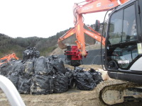 今はまだ国内で見られませんが、大型土のう掴み機は省人力化や、機械化による人体の被ばくの危険性を低下させ、コスト削減にも有効と考えます。