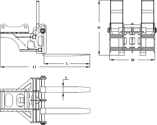 - 油圧シリンダー2本を搭載し、フォーク幅を運転席から調整することができます。