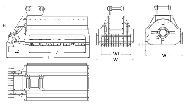 - 動力源であるバックホウの油圧、油量を最大限に生かす高伝率で高効率なハイパワーを実現