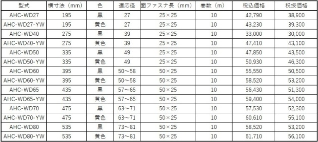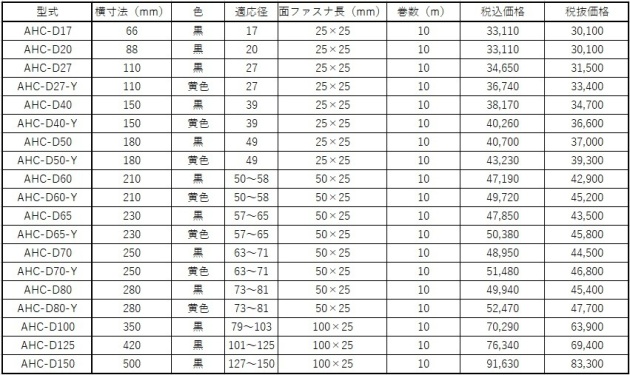 油圧ホースの太さや、使用油圧、ホースの設置場所(摩擦の有無)などに合わせて選べるよう3種類をご用意しました。