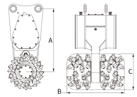 デュアルドラムに配置された丸ビットで切削。専用ビットがそれぞれ単体で回転するため、ビットの片減り摩耗等が発生しません。ビットのコストパフォーマンス性にも優れています。