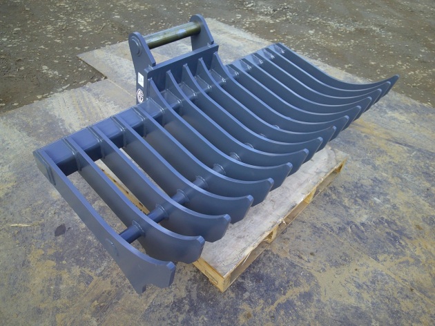 チルトローテーター(Steel Wrist製)に取り付ける開墾用レーキを納品