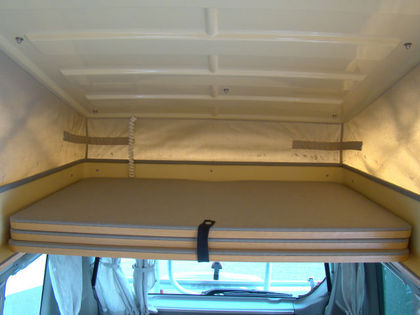 ポップアップルーフは片側が大きく斜めに上がるルーフ で、ベッドとして使用します。