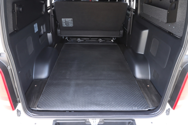 トヨタ200系ハイエース標準ボディや日産NV350キャラバン標準ボディの左右タイヤハウス間にサイズを合わせて設計された製品です。