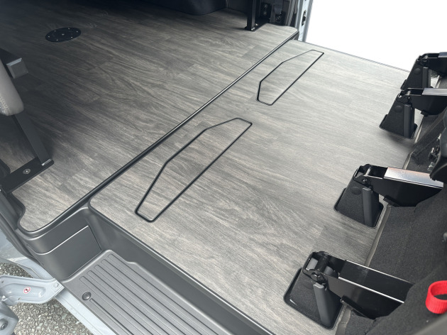 キャラバンマルチベッド車両セカンドシート下部分にフロアパネル設置!