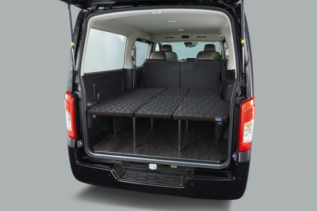 キャラバンマルチベッドは日産ディーラーさんから購入することができる特別仕様車となっていて、フロアパネルとダブルフリップベッドを標準装備。車中泊やアウトドアを楽しめる1台となります!