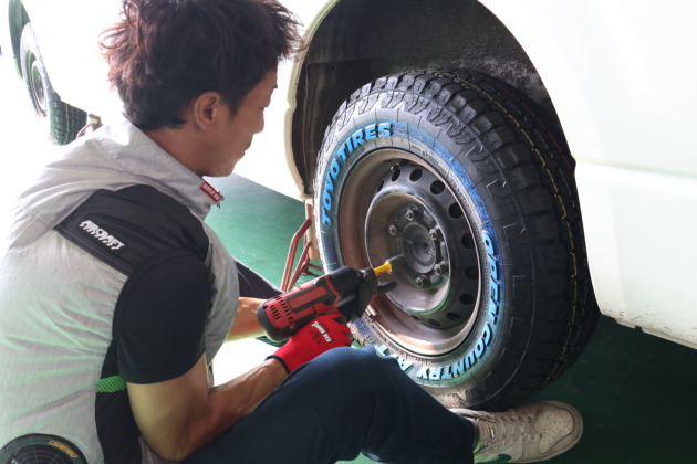 浅野さんのハイエースタイヤに"トーヨータイヤオプカン"装着!