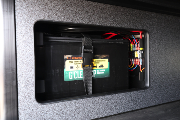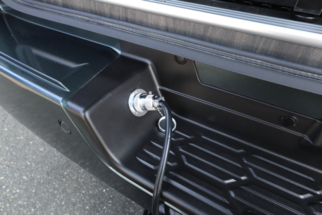 リアステップ部分には長期間車中泊を行う方におすすめな外部電源システムを搭載。キャンプ場やRVパークなどの電気サイトから電源を供給したり自宅でバッテリーを充電していただけます♪