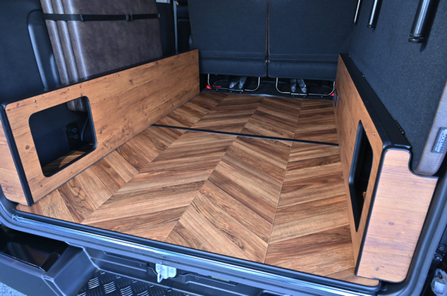 ES TXベッド取付けには、ESフロアパネルの取付けが必須です。ヘリンボーン調のフロアシートを採用したES TXフロアパネルはES TXベッドと相性ばっちり!ES TXベッドはボディに加工を加えることなく取付けることが可能です、ぜひフロアパネルと一緒にカスタマイズしてキャラバンを室内を遊び仕様にリフォームしませんか?