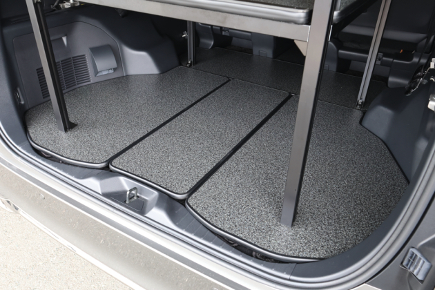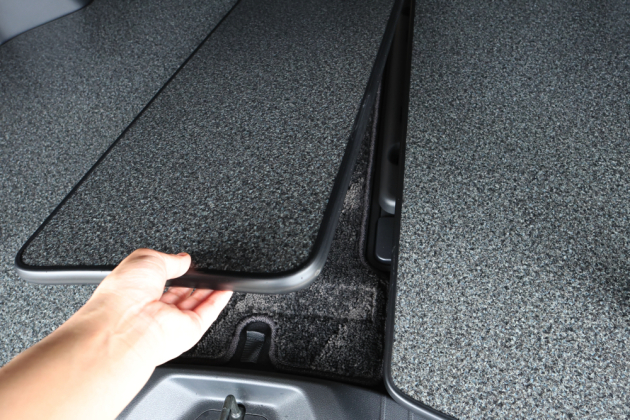 今回はサードシートがあった荷室部分に4枚、セカンドシートとの隙間に1枚、合計5枚のフロアパネルに分割して設置しています。