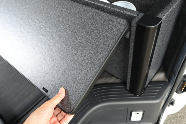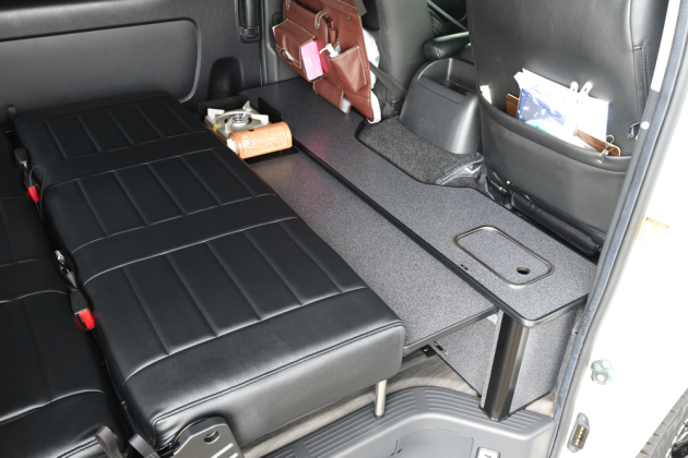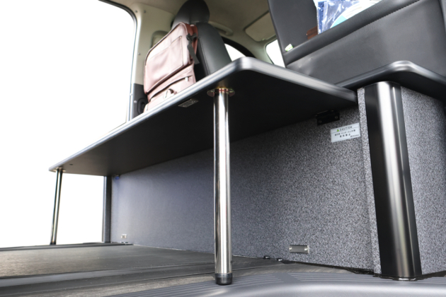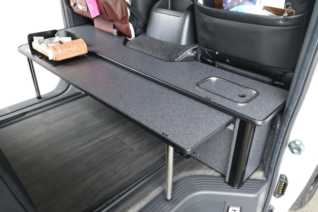 シートをベッド展開した時も、シート前にぴったり収まるサイズで設計しているので就寝スペースを確保したままギャレー設備の使用が可能です。
