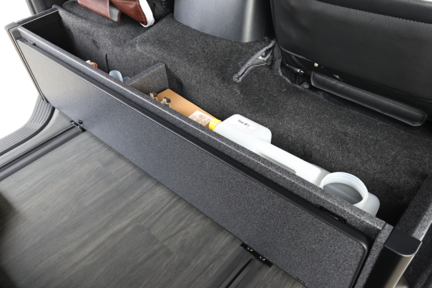 ボックス内にはギャレー設備に必要な炊事用カセットコンロ、ポリタンク等を収納することができます!