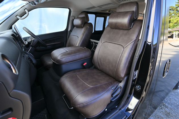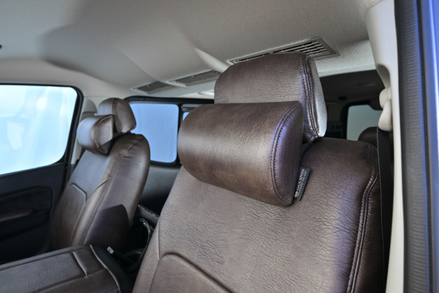 ES TXベッドのベッドマット表皮と同じビンテージブラウンレザーを採用している"ESTX シートカバー"キャラバンのフロントシート・セカンドシートの形状を型取り、オグショー自社で裁断・縫製を行なっている安心の国産シートカバーになります!