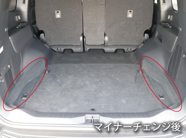 マイナーチェンジ前とマイナーチェンジ後の車両では荷室の形状が異なります。(画像赤丸部分)
