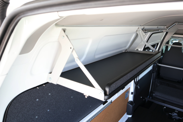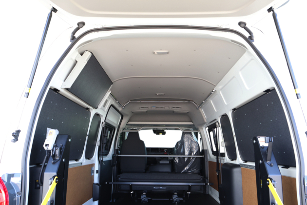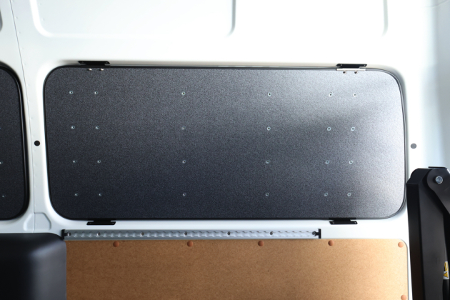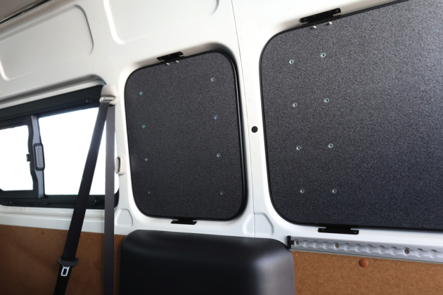 サイドのリアウィンドウ用や小窓にはウィンドウパネルを装着しました。窓の保護としての役割があり、バイクを積載する際のハンドルやミラーによる擦り傷から窓を守ってくれます。パネルにはナットが埋め込まれているのでオプションパーツなどでカスタムすることも可能です。