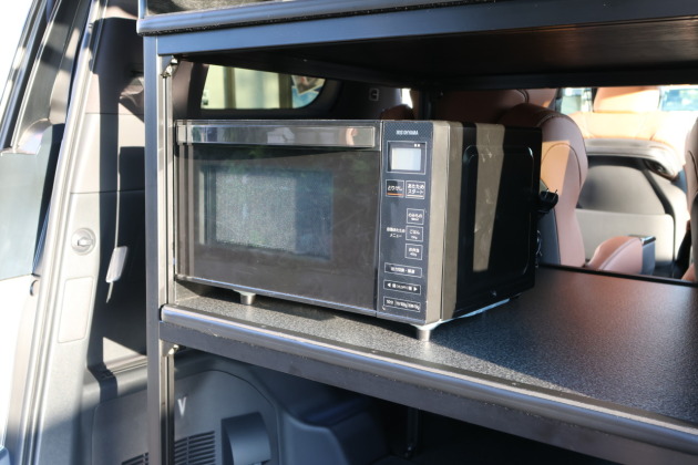 納車日にはさっそく普段使用している電子レンジを積載!サブバッテリーも搭載しているので問題なく使うことができました♪