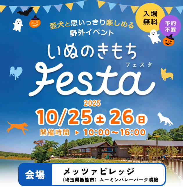 2025年10月25日と26日の2日間、埼玉県にあるメッツァビレッジにて「いぬのきもちFESTA」が開催されます!