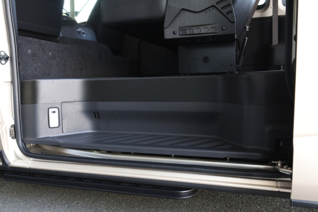 車椅子をご利用の方が安心して、いつものお出かけや通院が行えるように車椅子用リフトを200ハイエース荷室後部にカスタムしました。