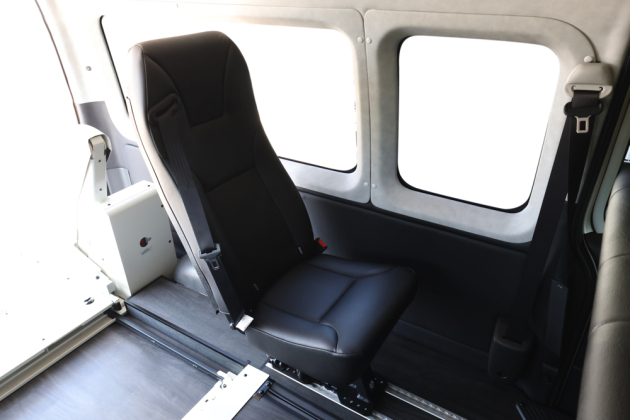 セカンドシートの後には1人用のシートを装着。車椅子の横にシートがあるのですぐそばで車椅子の様子を確認していただけます。このシートは専用のキャッチとワンタッチレールで固定されており、レールの範囲内でお好みの位置に移動することが可能です。