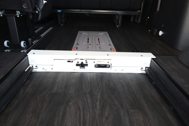 これにより、車椅子の固定装置を床に埋め込む形で設置することが可能となり、見た目もすっきりと、かつ高い耐久性と安全性を実現しています。