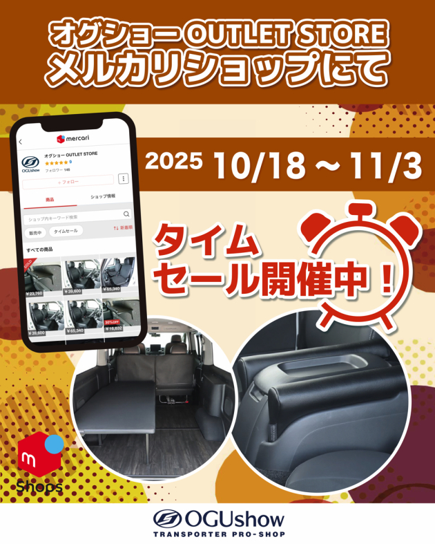 アウトレット商品を販売しているオグショーメルカリショップにて、タイムセールが開催されています!