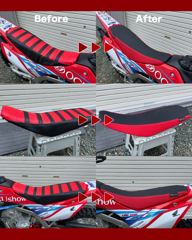 大会に出場するスタッフバイクのシートを張り替えました!