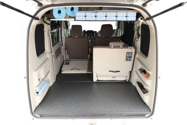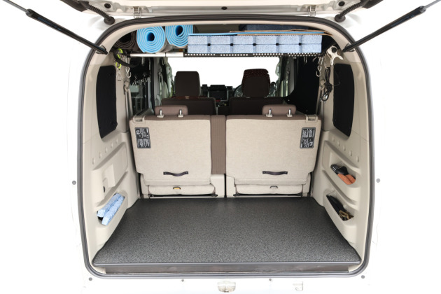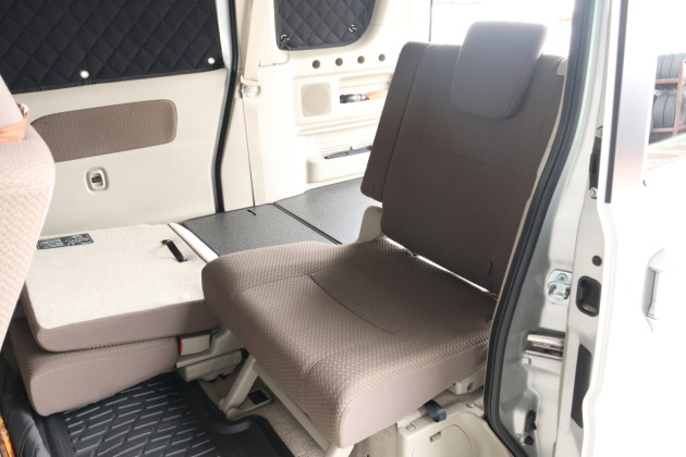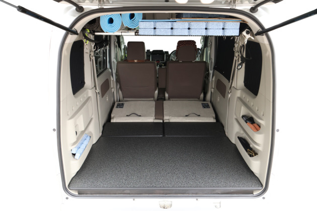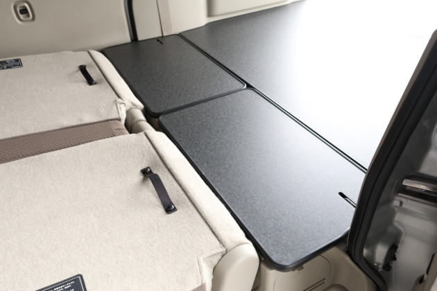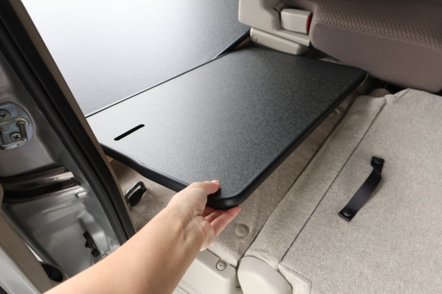今回製作したパネルは、この広がったスペースにも対応できる 専用設計。さらに、セカンドシートは分割タイプなので、シート機構に合わせてパネルも取り外し可能。