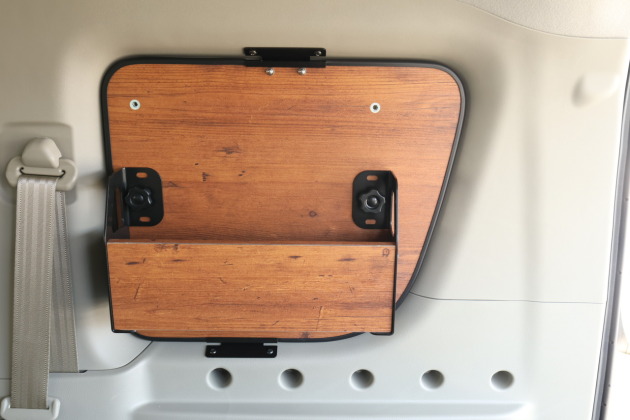 パネルには6個のM6ナットが埋め込まれているため、ナットを利用してオプションアイテムの装着が可能です。ES TXウィンドウパネルが収納スペースやテーブルに変わります。