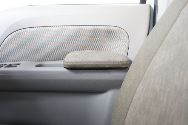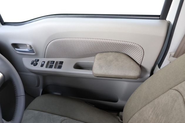 クリッパーリオのドアポケットに取付けることができるアームレストです。クッション性にこだわったこのESアームレストPLUSがあることで、肘(運転席は右肘、助手席は左肘)の置き場として使用していただけます。
