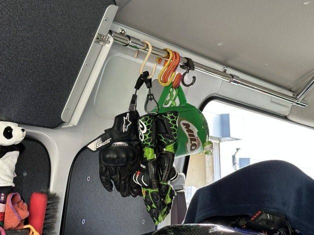この日は、室内にカワサキ ZX-10Rとヤマハ YZF-R1の2台がしっかり積み込まれていました。