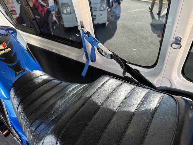 今回は展示車両の内装やバイクを積載するために使用したESパーツを紹介!