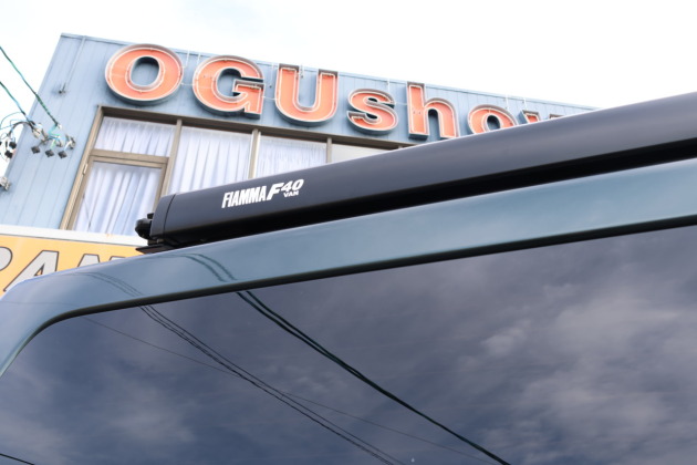 今回取付けたのは FIAMMA F40van(2.70m・ブラック)運転席側にカスタムし、専用のクランクハンドルを使ってオーニングをくるくると回すだけで本体が広がり、支えの足を出せば設置完了。キャンプ場や公園などで、日陰や雨よけとして大活躍します!