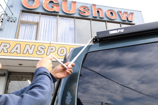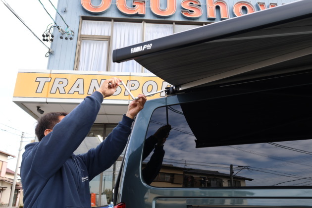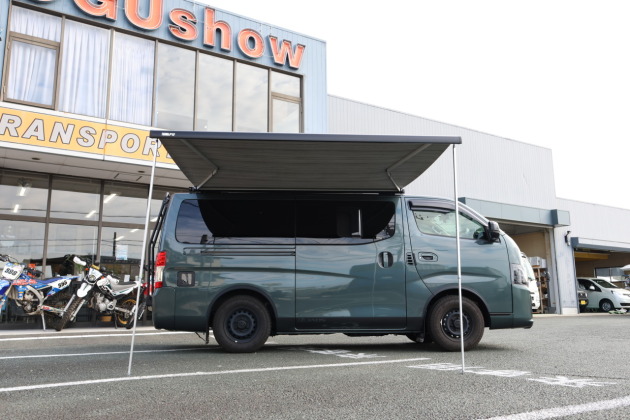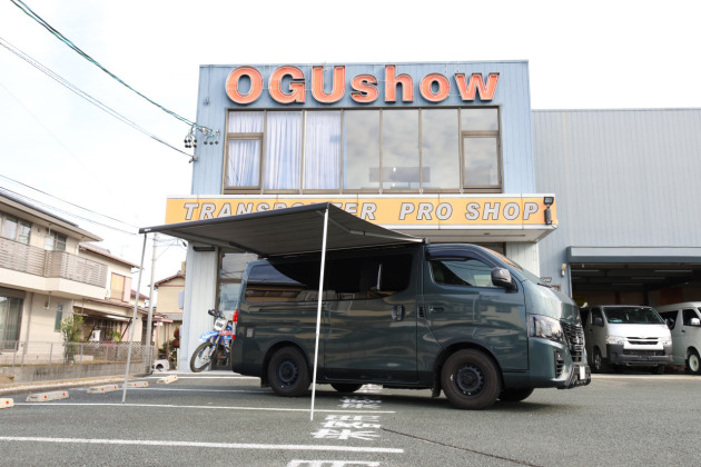 オグショーでは、店頭にお車を持ち込んでいただければ 1日コースでオーニング取付けを承っています。キャラバンは運転席側・助手席側どちらにもカスタム可能ですので、ぜひお気軽にご相談ください。