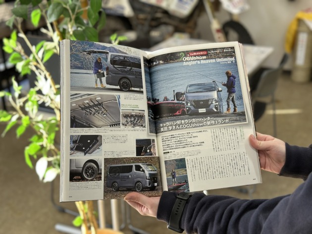 そして本誌では、1月にパシフィコ横浜で開催された釣りフェス日産自動車ブースにて展示された、人気カスタムショップ3社(BodyLine、CRS、OGUShow)の釣りキャラバンが掲載されています!