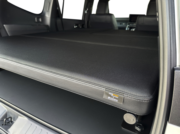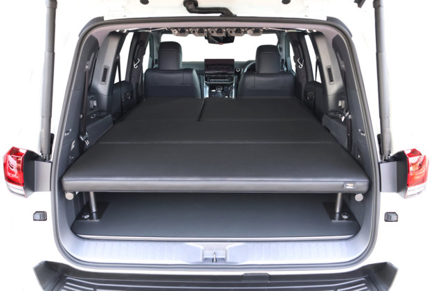 荷室の耐久性を高めるフロアパネルと、専用のベッドフレーム・ベッドマットがセット化となったランクル専用のベッドとなります。