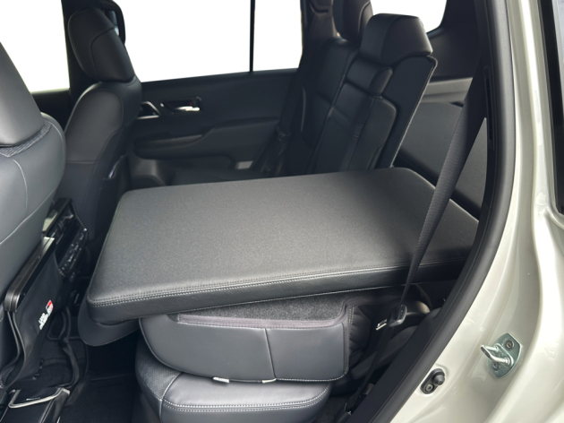 セカンドシートを前に倒しベッドマット2枚を前に移動させることにより、全長 約1820mmのベッドの展開を可能にしています。純正セカンドシートアレンジ性能を損なわないように、セカンドシートのどちらかをシート状態にしたままでのベッドアレンジも可能です!