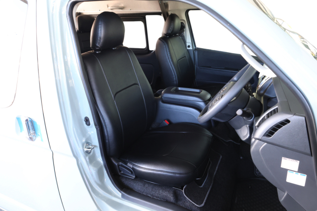 フロントシートには、自社オリジナルのESシートカバー(ブラックレザー)を装着しました!